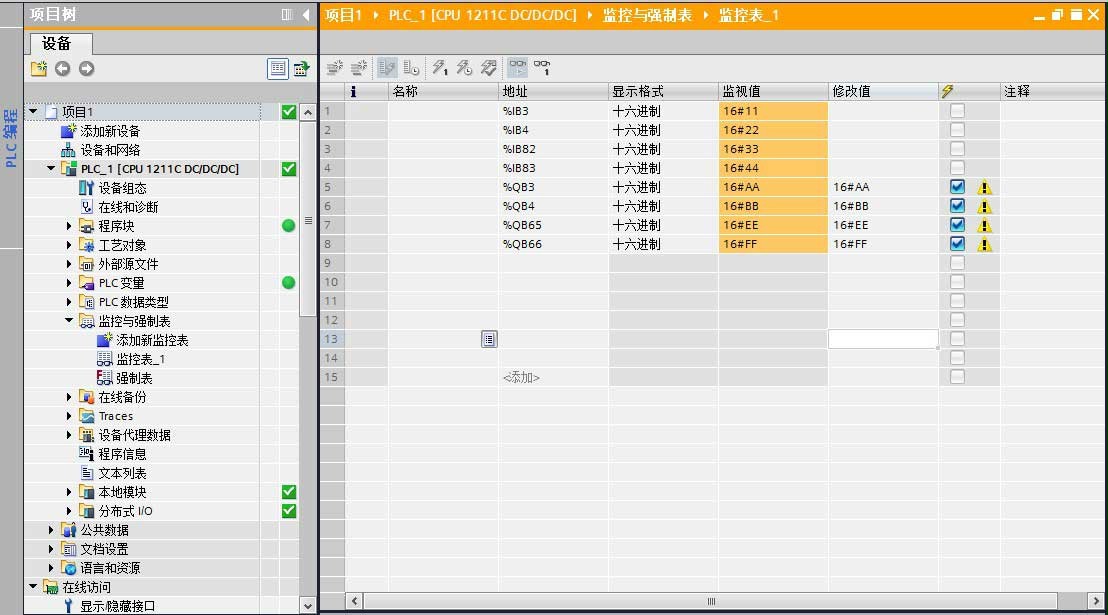 - 將程序編譯下載到 PLC,網(wǎng)關(guān)開始工作?梢栽诒O(jiān)控表中對數(shù)據(jù)進行監(jiān)視。