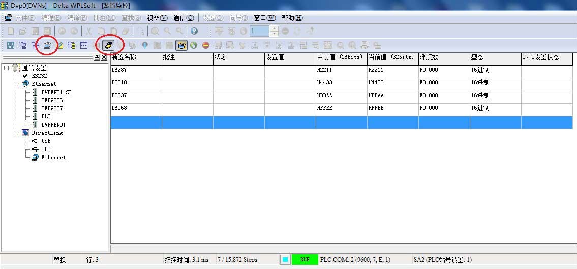 - 打開 PLC 軟件 WPL,可以通過監(jiān)控表進行數(shù)據(jù)的監(jiān)控和操作。