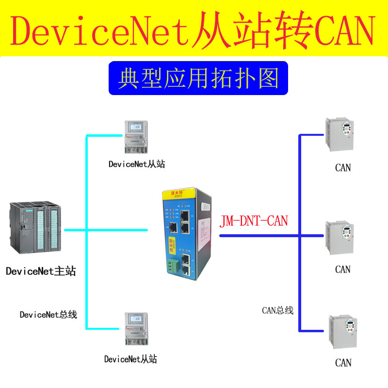 捷米特JM-DNT-CAN網(wǎng)關(guān)連接到DeviceNet總線中作為從站使用,連接到CAN總線中根據(jù)節(jié)點(diǎn)號(hào)進(jìn)行讀寫。
