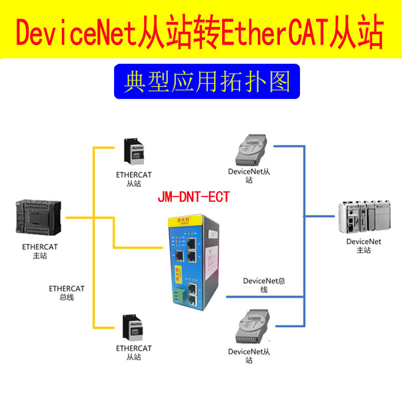 DEVICENET 轉(zhuǎn)EtherCAT 協(xié)議轉(zhuǎn)換網(wǎng)關(guān)工業(yè)級(jí) JM-DNT-ECT