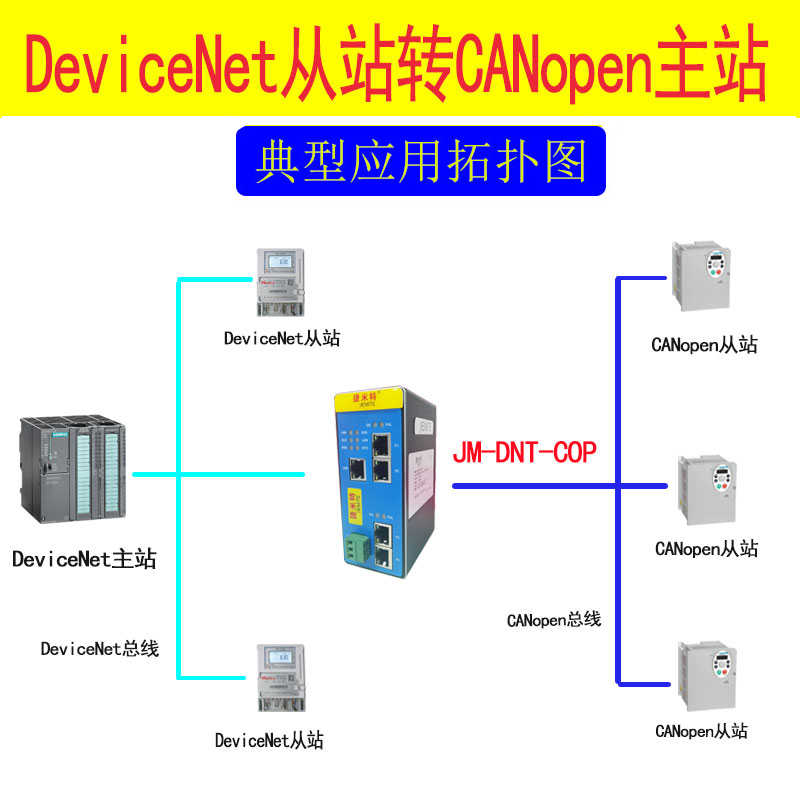 捷米特JM-DNT-COP網(wǎng)關(guān)連接到DEVICENET總線中作為從站使用,連接到CANOPEN總線中根據(jù)節(jié)點(diǎn)號(hào)進(jìn)行讀寫。